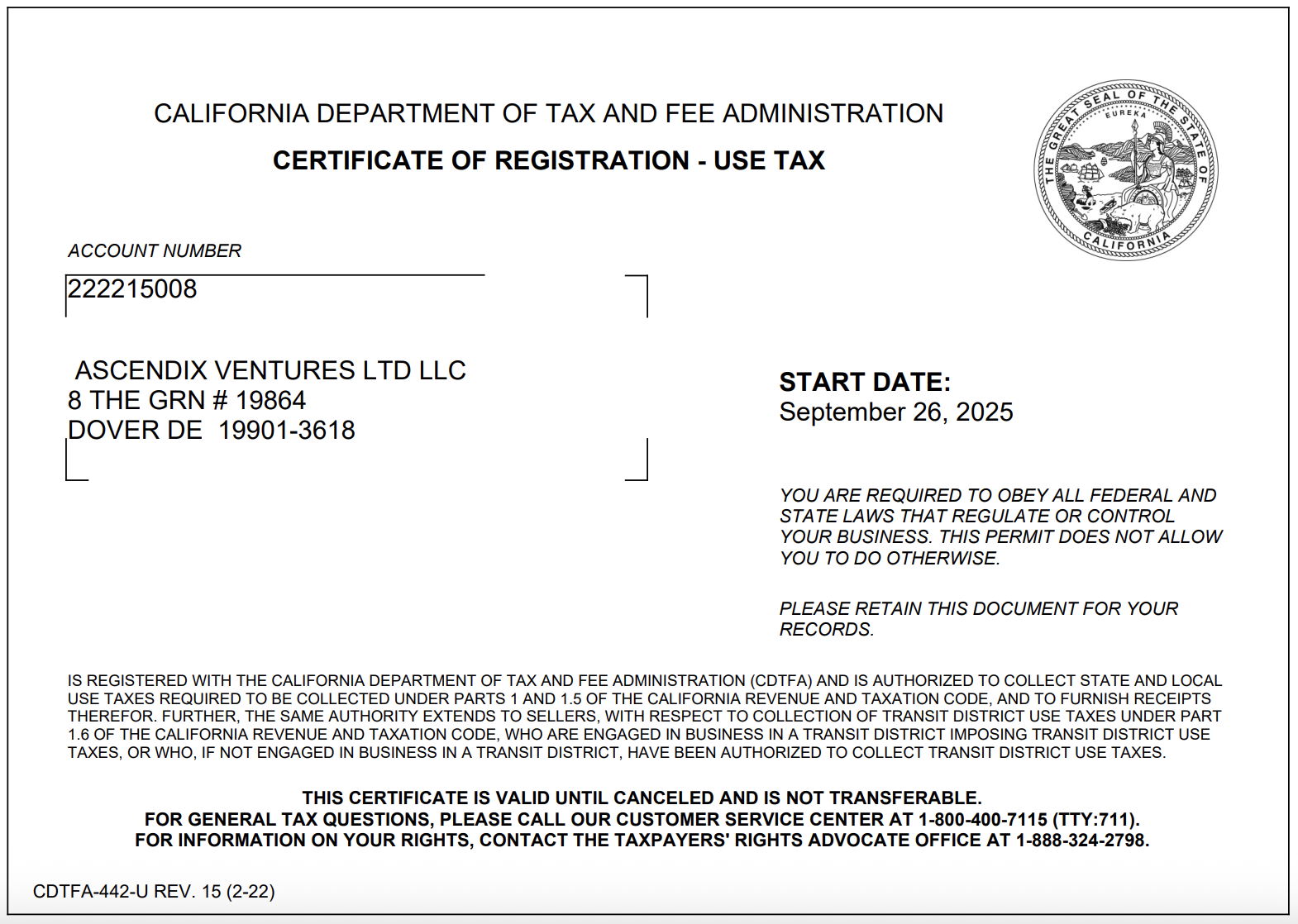 California gives us an incredible advantage — it’s a hub of innovation and logistics, with direct access to West Coast ports (Port of L.A.) and fast connections (LAX Hub) that help us ship quickly and reliably across the entire United States and more. Delaware keeps our headquarters grounded in a business-friendly environment where we continue to grow our nationwide presence and expand internationally.